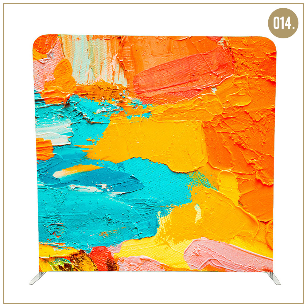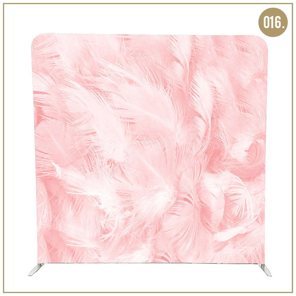 Az alábbi hátterek cca. 2,5*2,5 méter (szélesség, magasság) méretű, két oldalasan nyomtatott hurkolt poliészter belső, rejtett alumínium csővázon. Ezek valamelyike elé fognak beállni a vendégeitek. Érdemes a szelfigép által nyomtatott papírkép grafikájához, valamint a helyszínhez (főként dekorációhoz) passzoló hátteret választani.